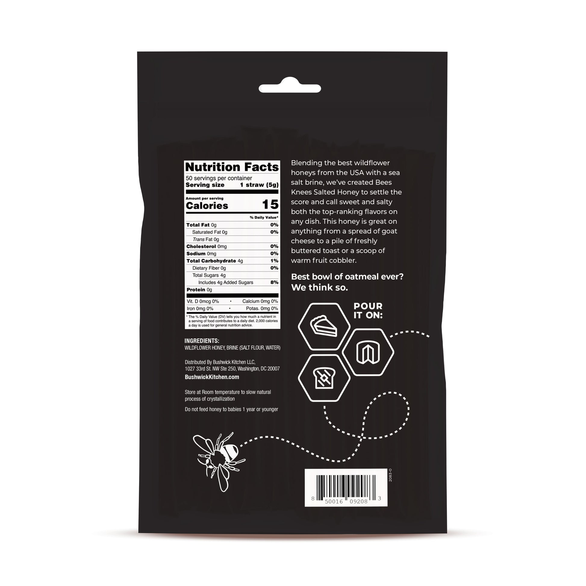 Blending the best wildflower honey from the US with sea salt, our Salted Honey Straws mean you never have to be without. Packable, purse-able, portable honey. 50 per pack.