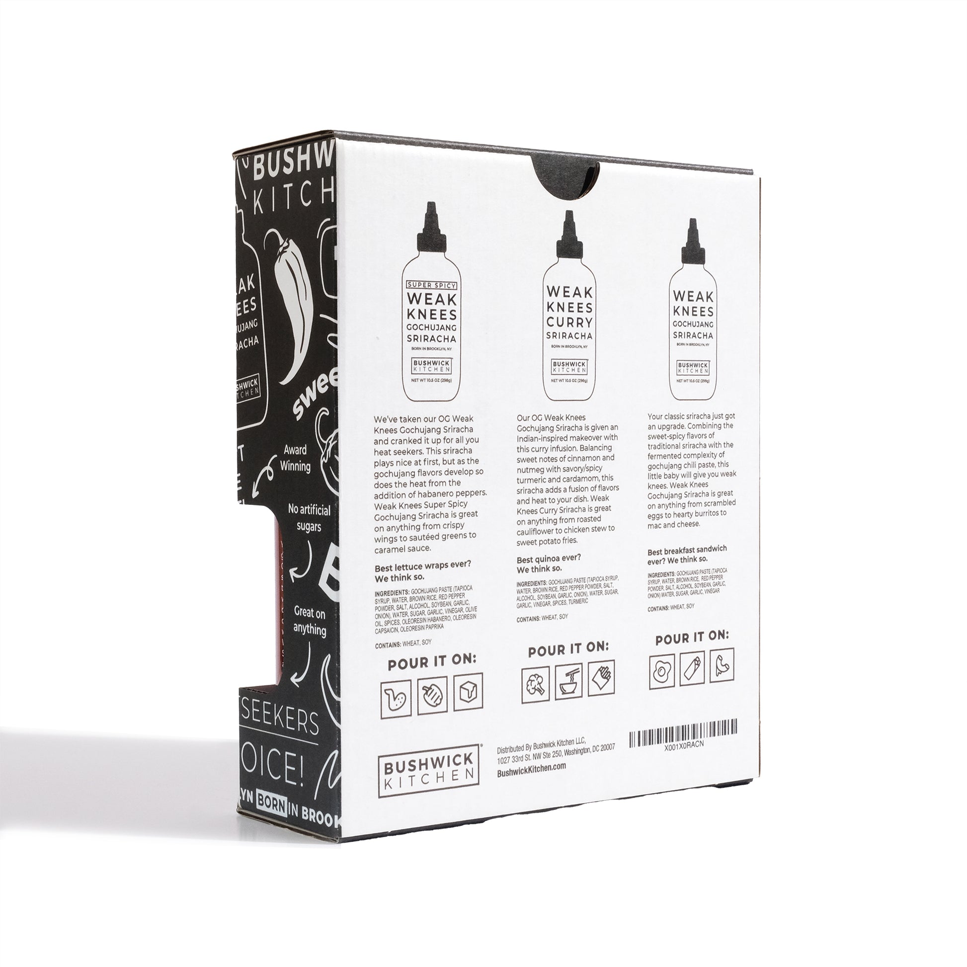 All three of our Srirachas (Gochujang, Super Spicy and Curry) in one click. Beautifully packaged with a BK dish towel and a unique QR code linking you to a collection of recipes.